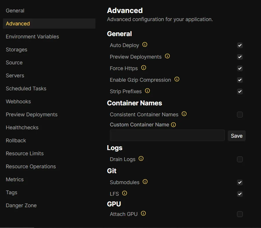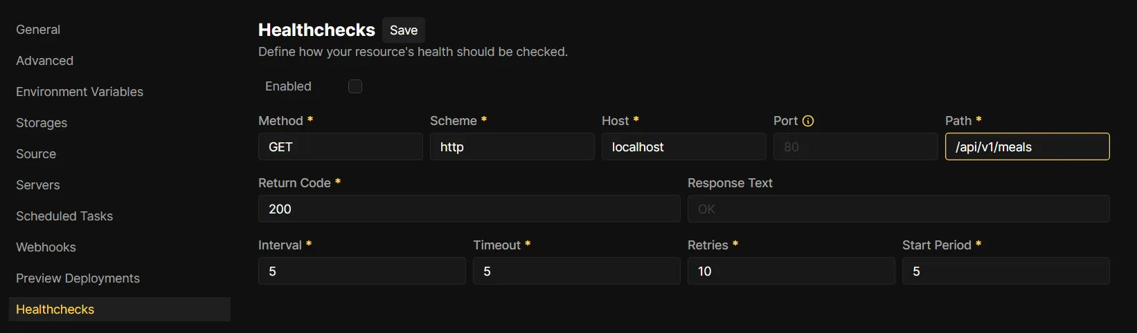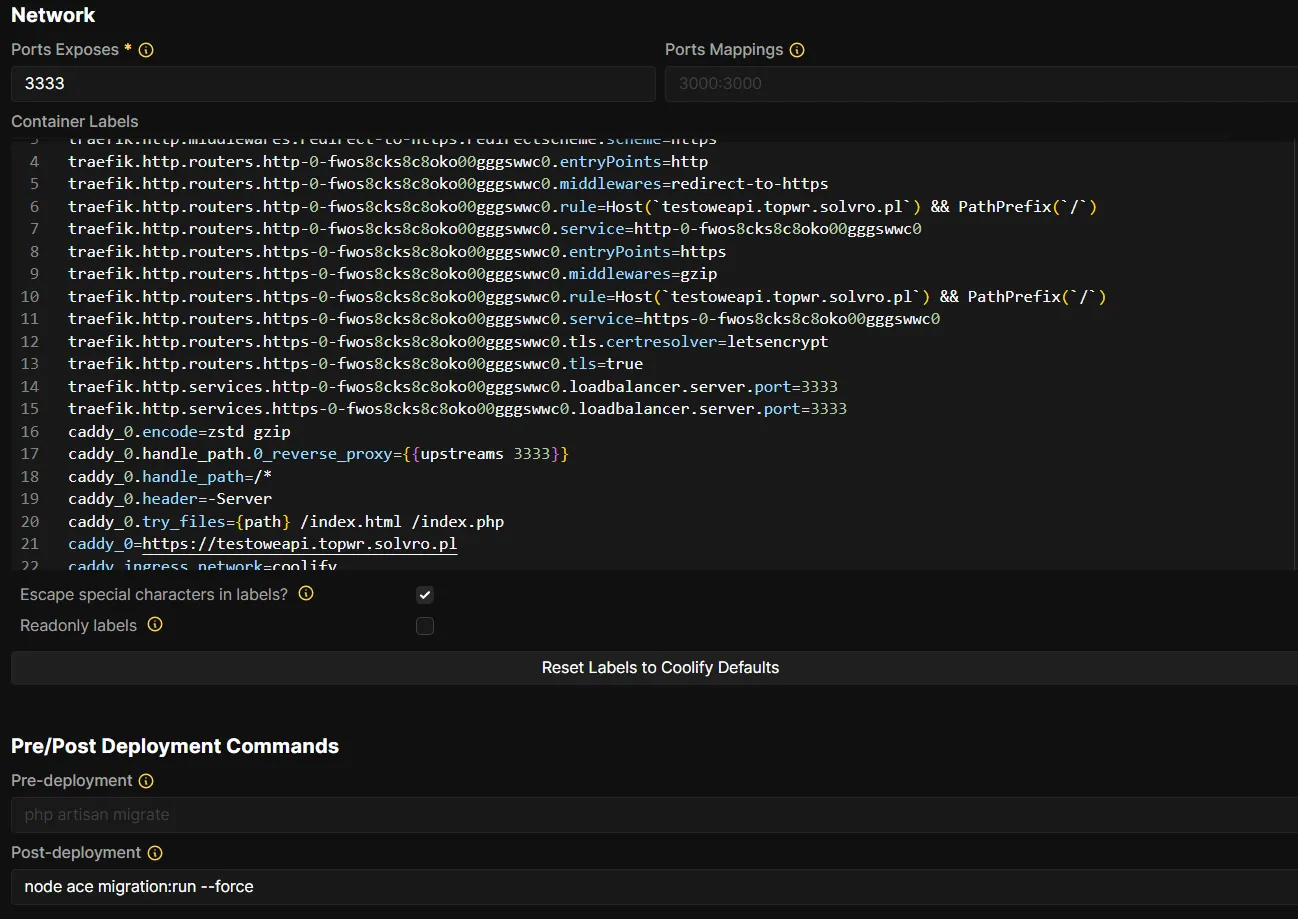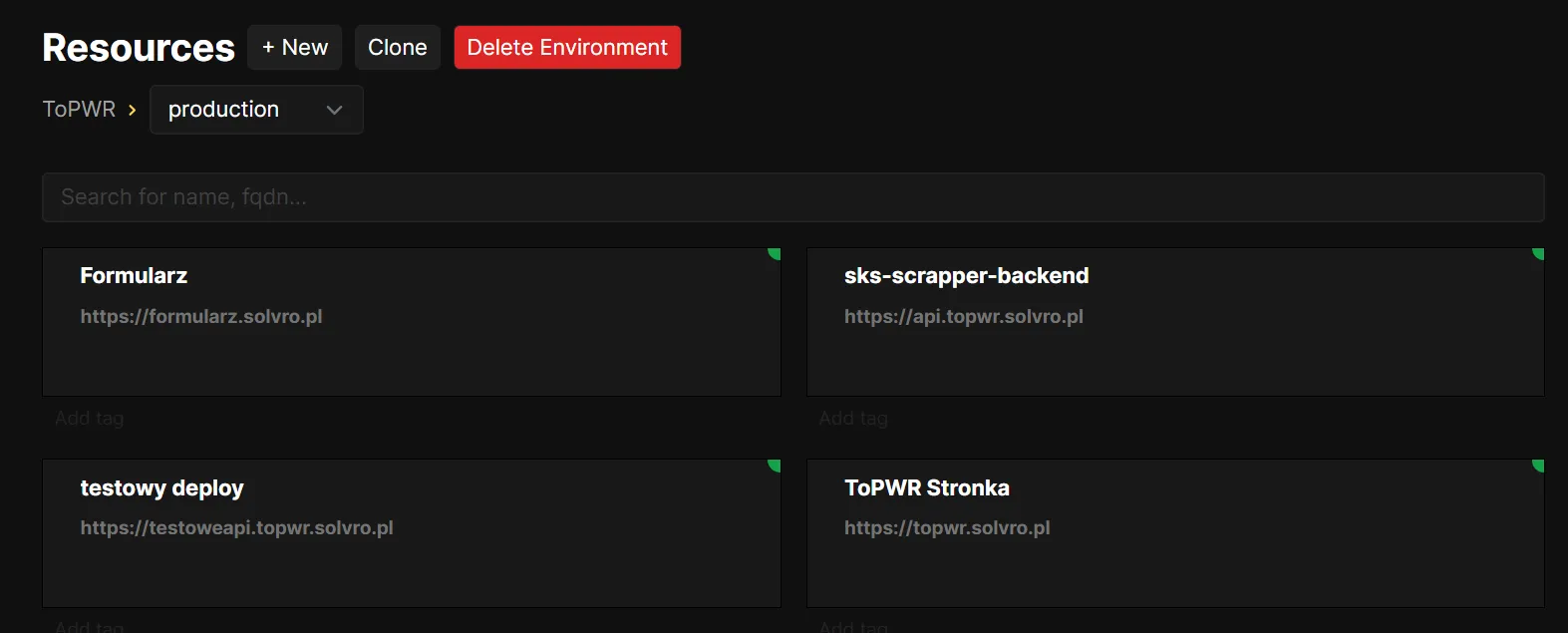 Jeśli nie chcecie mieć irytującego warningu koło statusu resource’a to możecie ustawić healthchecki https://coolify.io/docs/knowledge-base/health-checks/