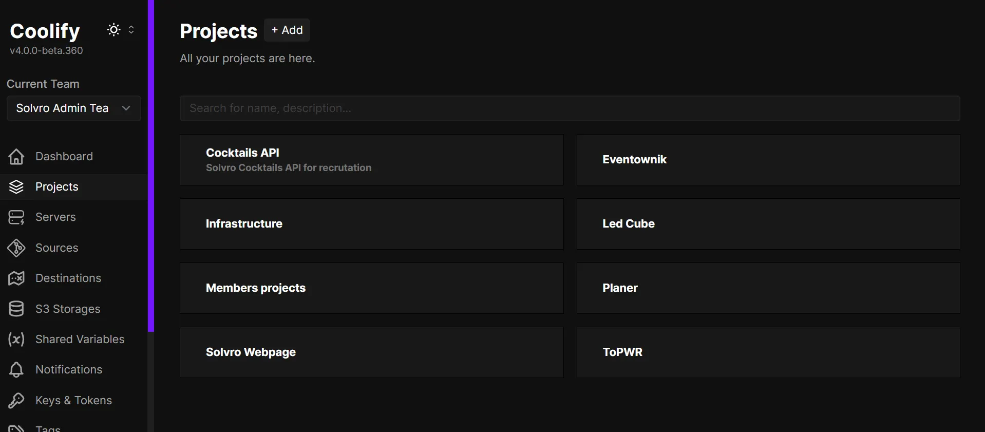 *.solvro.pl - Seohost - ma więcej ramu i wrzucamy tam mniej ważne projekty albo projekty członków, dostępny pod adresami
