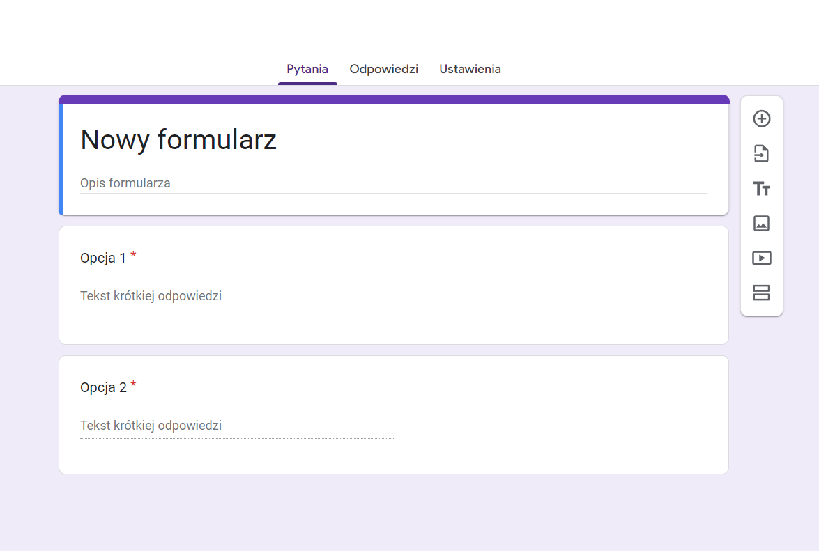 Przejdź na stronę Google Forms, stwórz nowy formularz i dodaj swoje pytania.