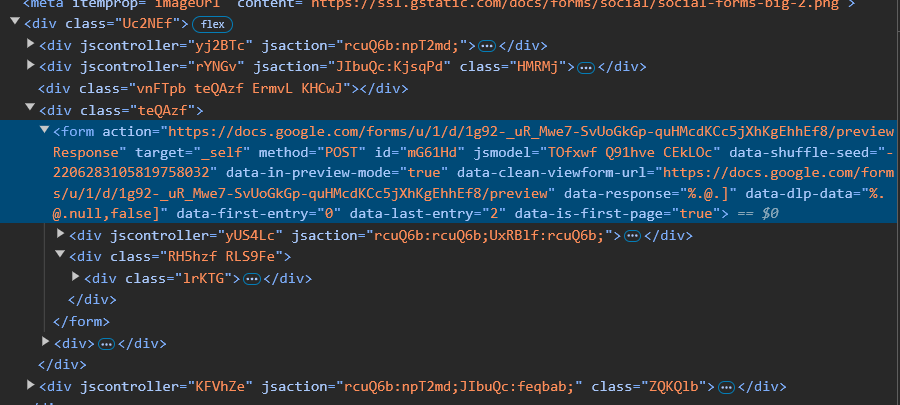 Elements. Następnie inspect toolem (Ctrl + Shift + C) najedź na formularz i znajdź elementform: