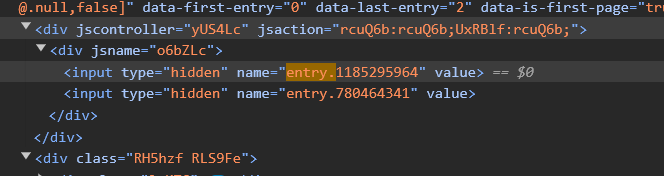 Ctrl + Fw devtoolsach (nie na stronie!)entry.aby znaleźć dwa pola (jeśli tyle miałeś w formularzu) i skopiuj je do odpowiednich zmiennych. Są one ułożone zwykle w dobrej kolejności: